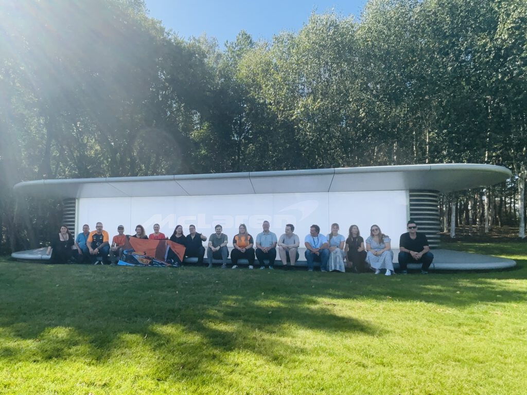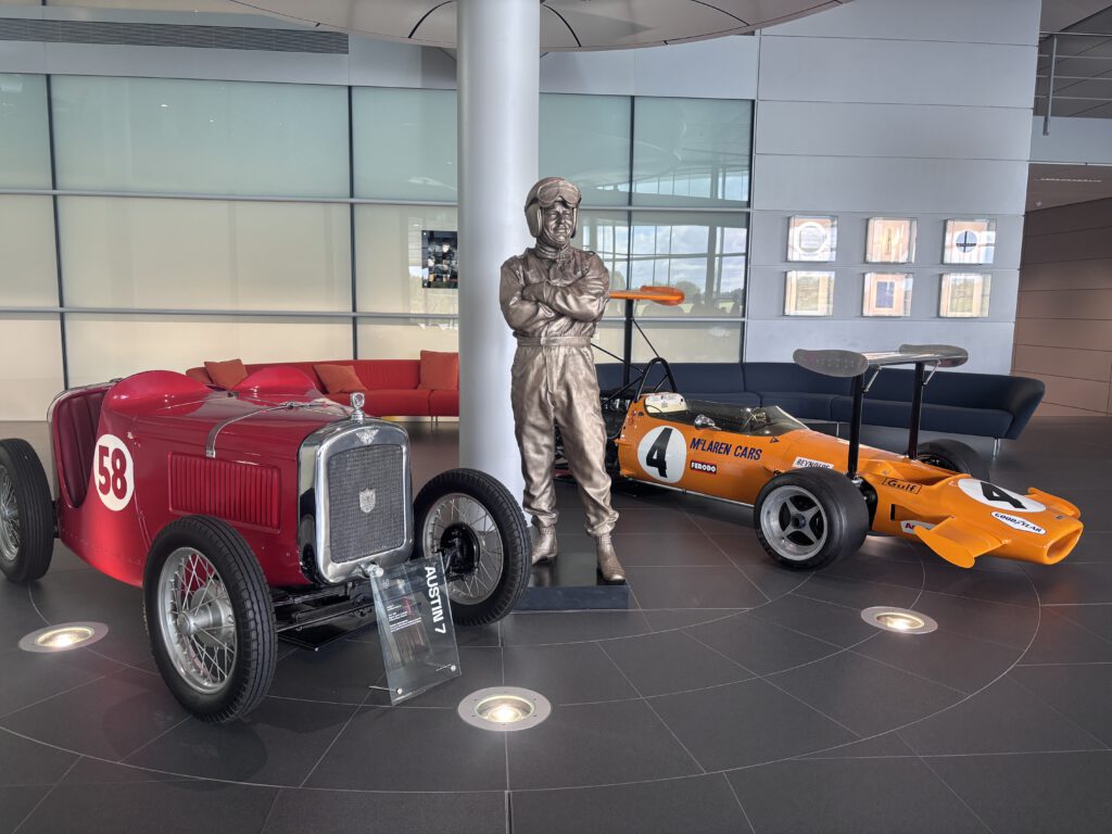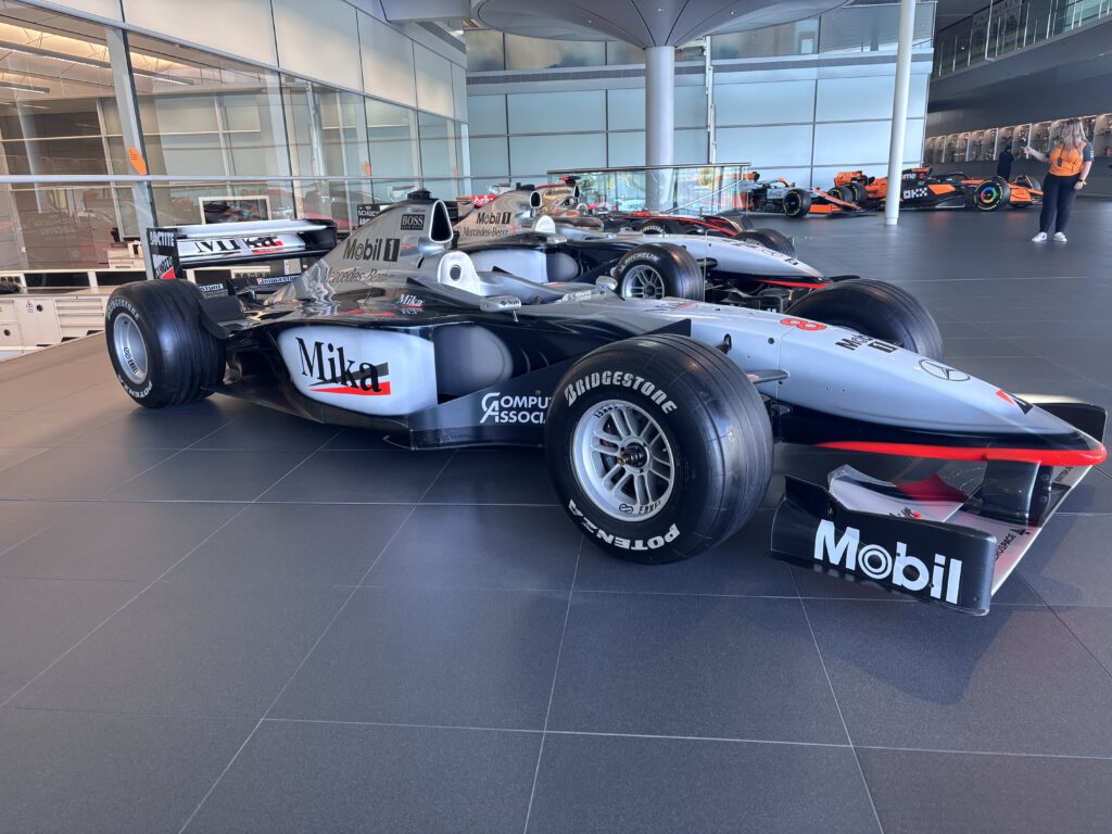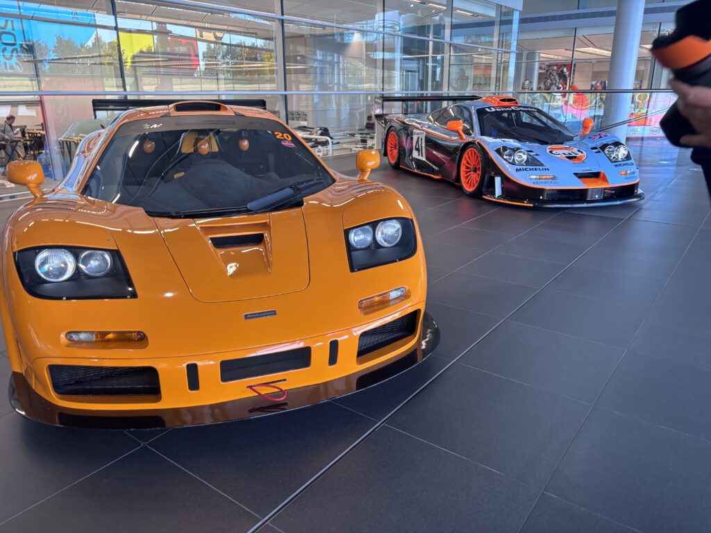 Monday morning we went to McLaren MTC. We had to go to a special parking place and a shuttle bus drove us to the VIP entrance. And yes it’s what they say when you drive down that road it’s like a big wow factor. The building is so impressive in it design. We had a photoshoot with last year car. And during out coffee break we saw Zak Brown entering the building. The place was impressive and amazing to see how they build the racing cars. To see alle the trophy’s and the factory where they build the street cars.  All the cars are made by hand. For me it was impressive and I saw how much my dad loves this place. It’s so impressive and big also with a gallery of old cars. Really a trip never to forget.